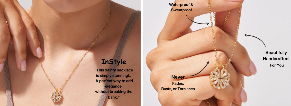 Our Clover Hearts Necklace symbolizes the four essentials of a meaningful life: luck, love, protection, and good fortune. Each clover leaf represents one of these cherished values, making it a beautiful reminder of the blessings around you.